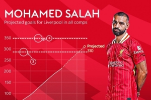 天空体育:萨拉赫最终可能为红军打进310球,排名队史射手榜第二